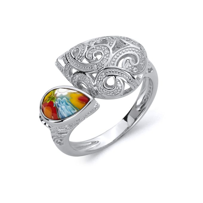 RingsMillefiori Multicolor Coctail Ring Millefiori Right Hand Ring Pear Shape Murano Glass Ring