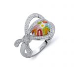 Hand Crafted, Sterling Silver 925 Mount. Bezel Set, Pear Shape Multi Colored Millefiori Murano Glass. Micro Pave Set Cubic Zirconia Accents Over Gold Plated Renaissance Leaf Motif. Available in White As Well.