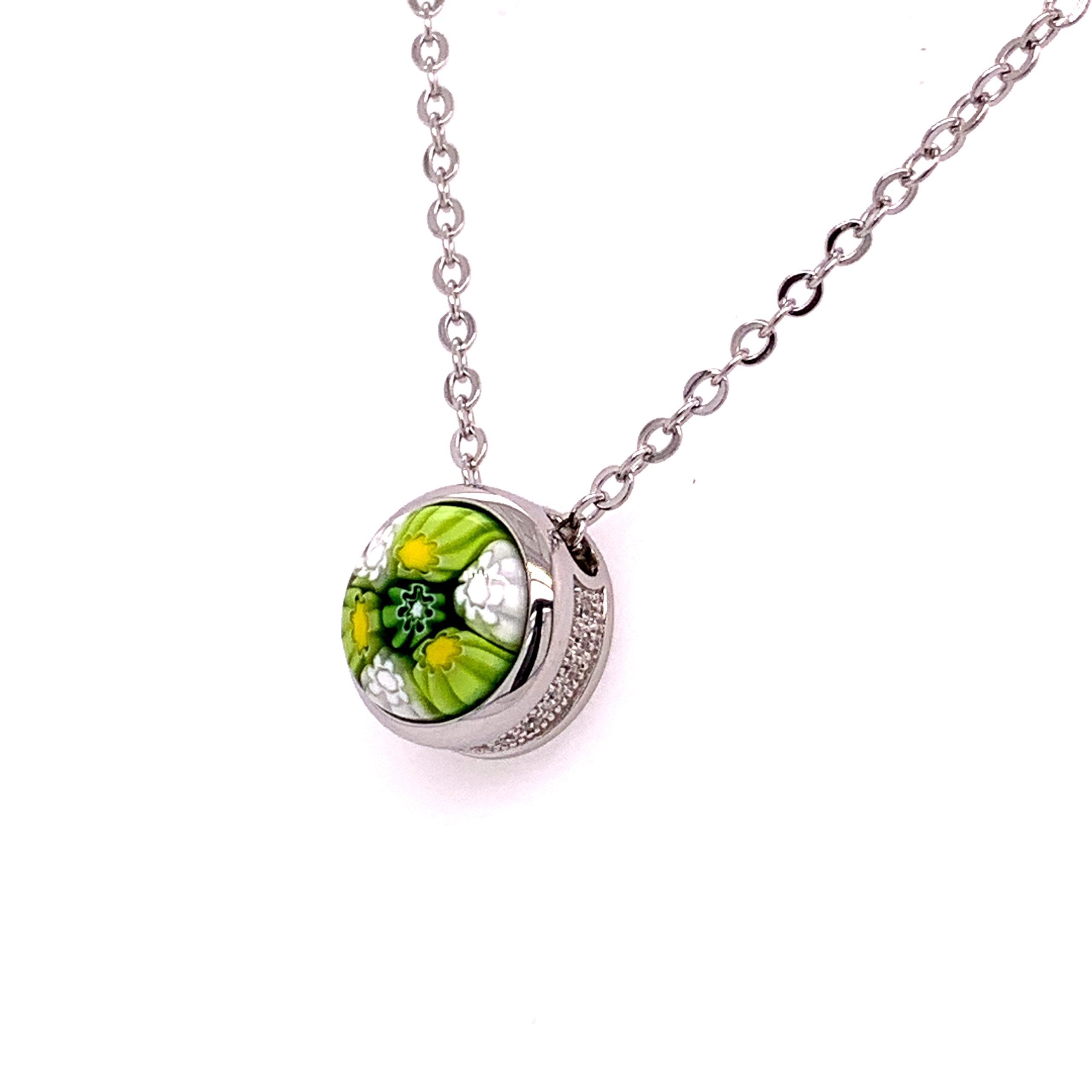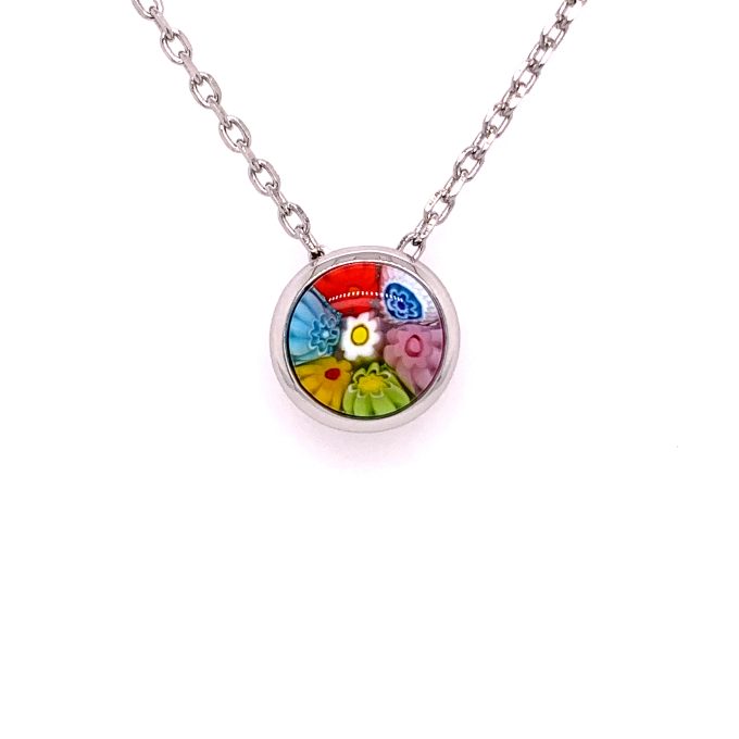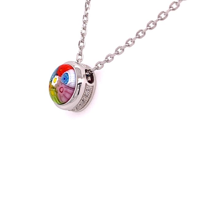 NecklacesMulti Color Millefiori Cubic Zirconia Accents 0.00 GramsSilver Faceted Round Murano Glass Necklace