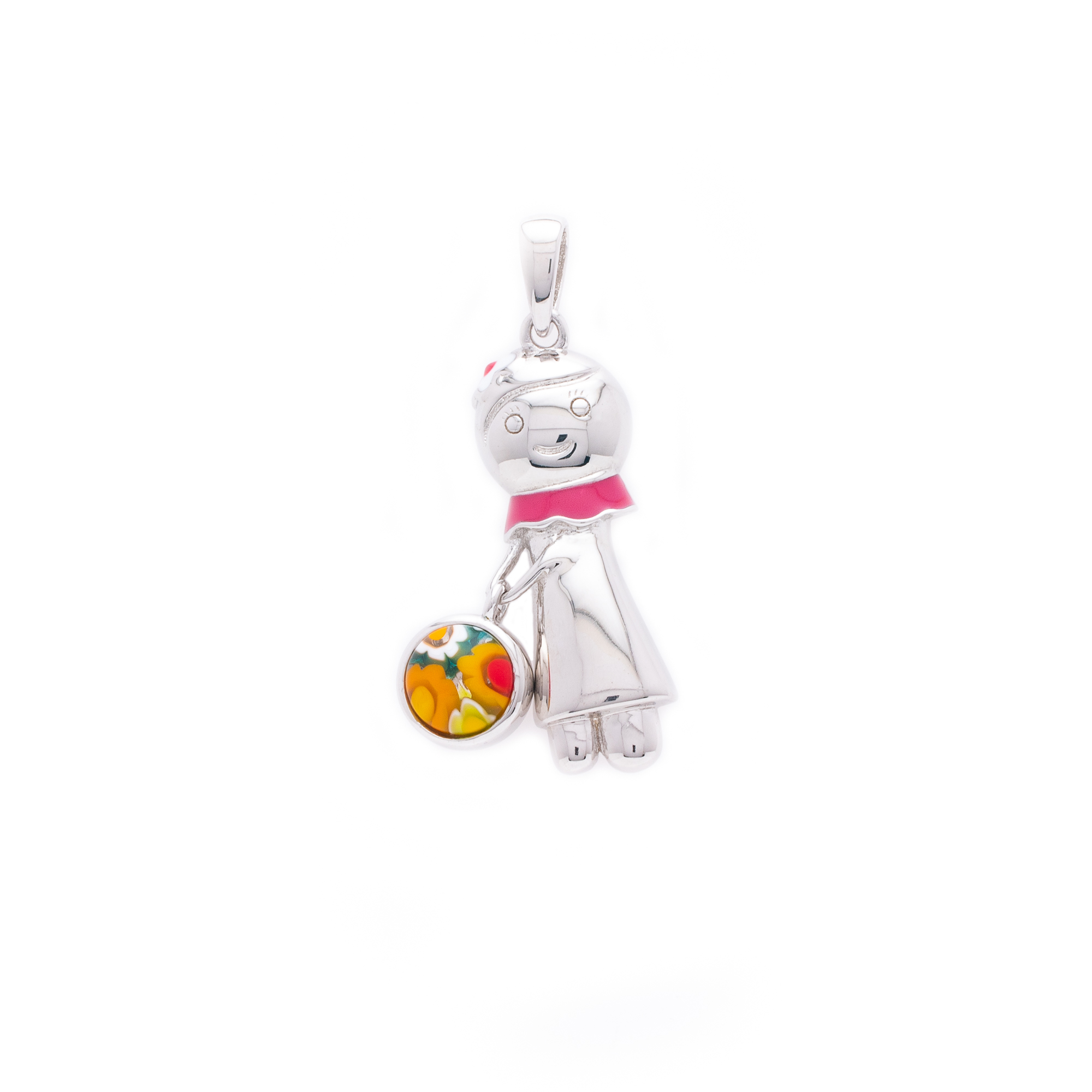 Youngster Round Millefiori Girl Murano Glass Pendant