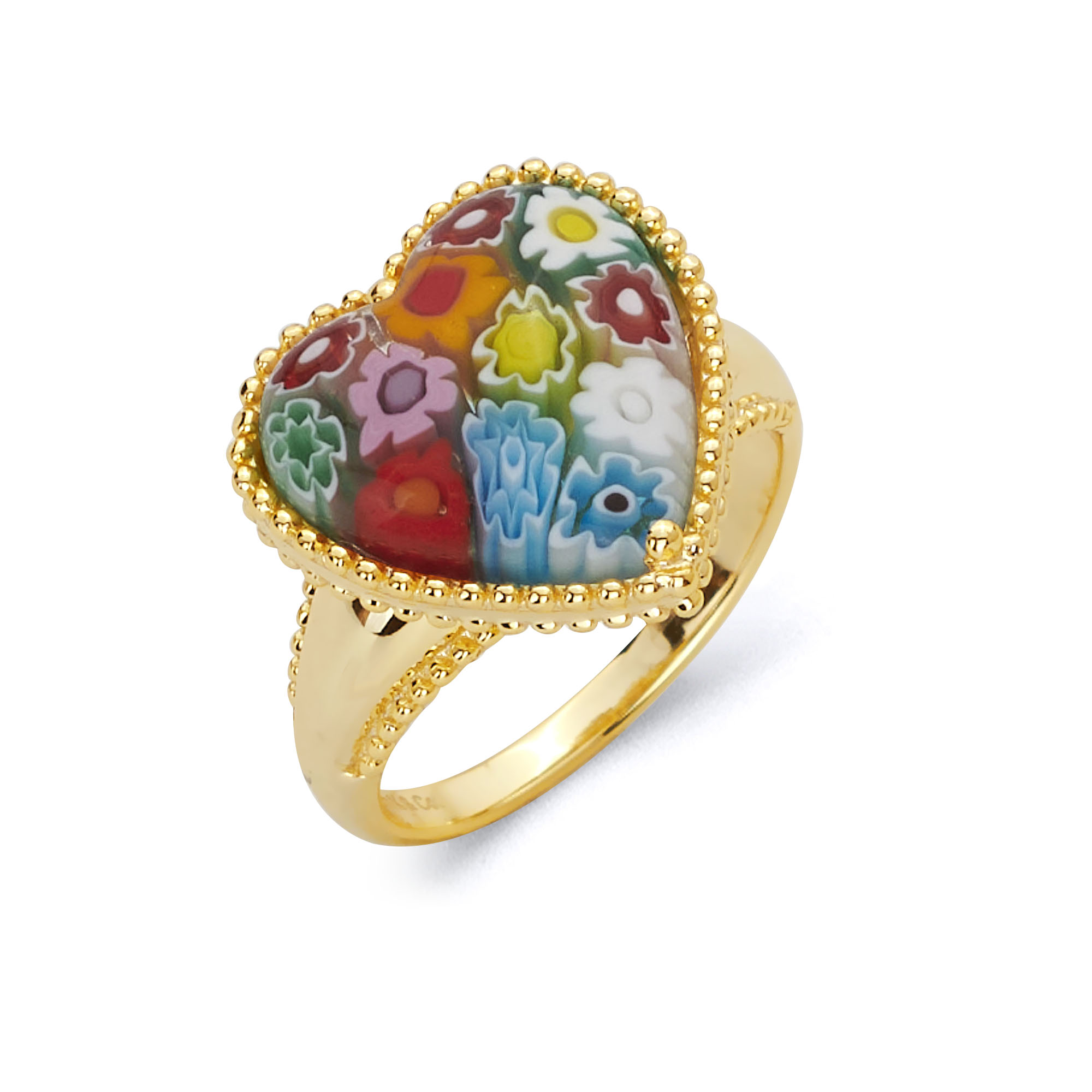 RingsMillefiori Multicolor Bezel Set Milgrain Accent Heart Millefiori Bezel Set Heart Shape Murano Glass Ring