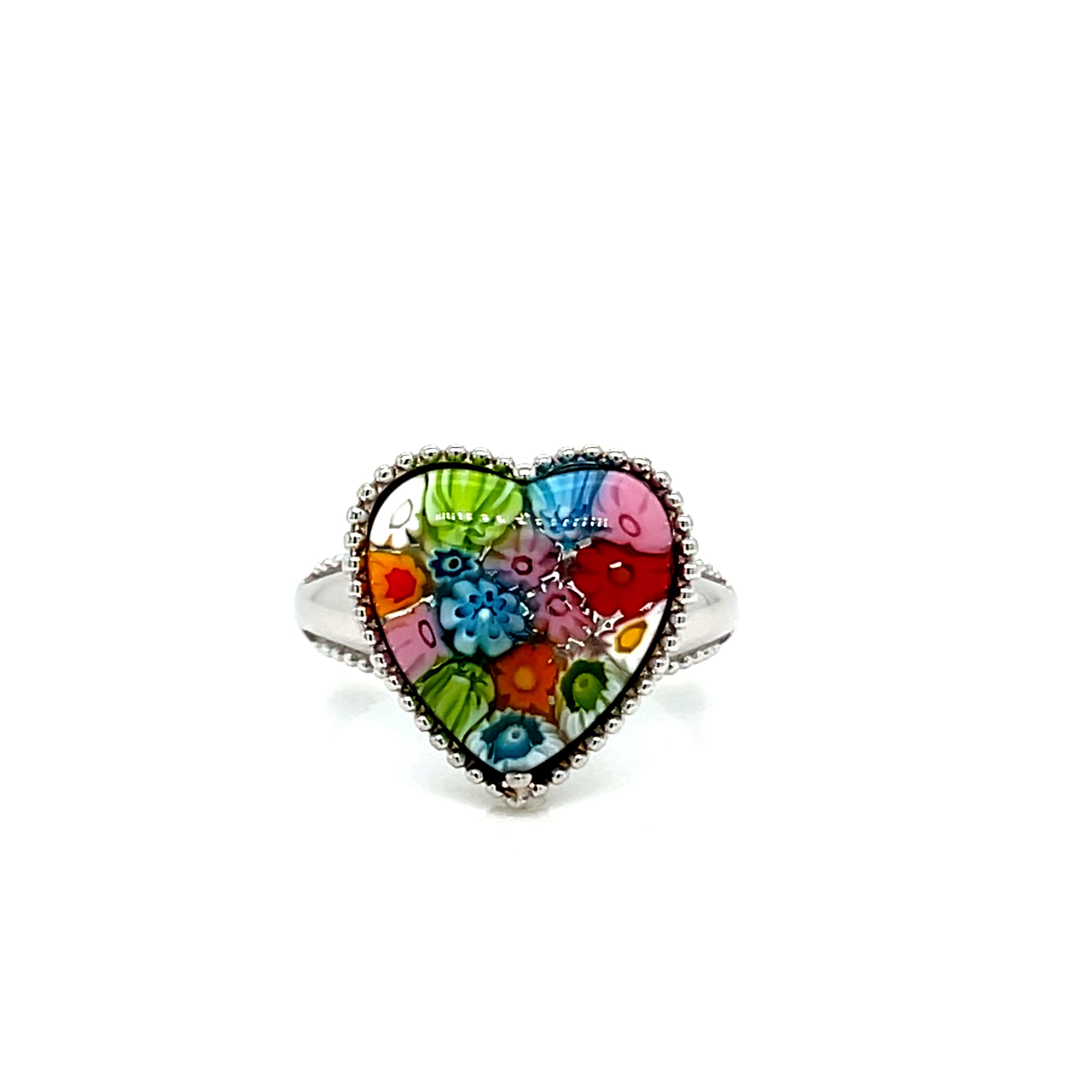 The Millefiori Murano Glass Heart Shaped Promise Ring