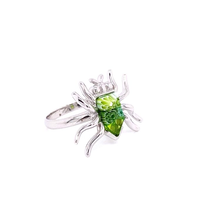 Shield Cut, Murano Millefiori Glass, Sterling Silver Spider Ring By Alan K
