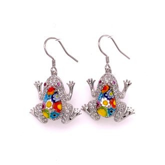 Murano Millefiori Multi Colored Pear Cut Glass Frog Drop Earrings.